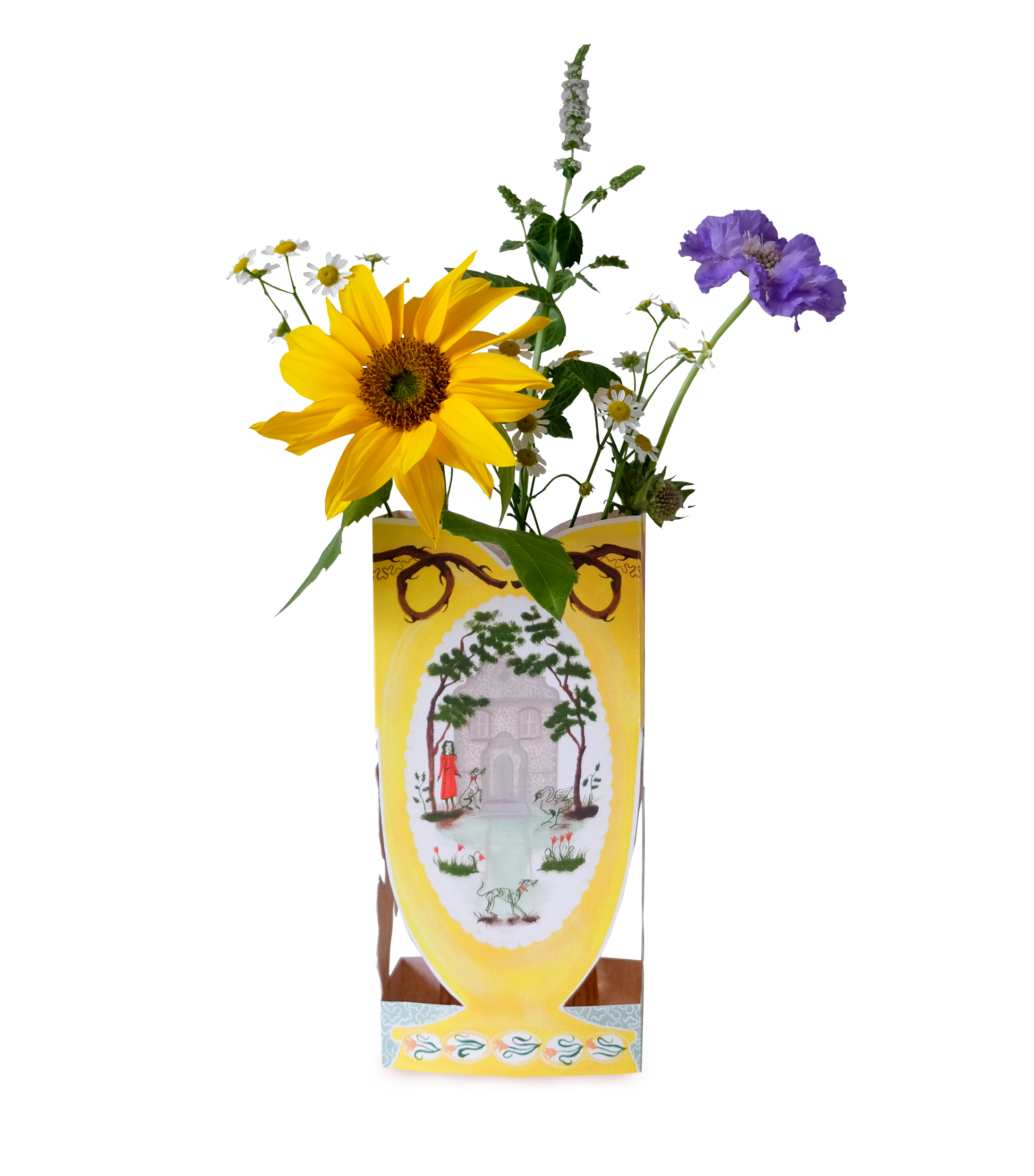 The die-cut cards are 148mm x 210mm, they are packed with an envelope in a biodegradable cello sleeve.
